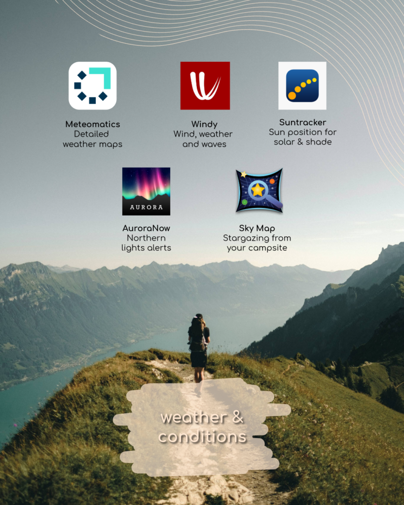 ✔️ Windy – Provides detailed wind, wave and weather radar – perfect when planning outdoor days or coastal camping.